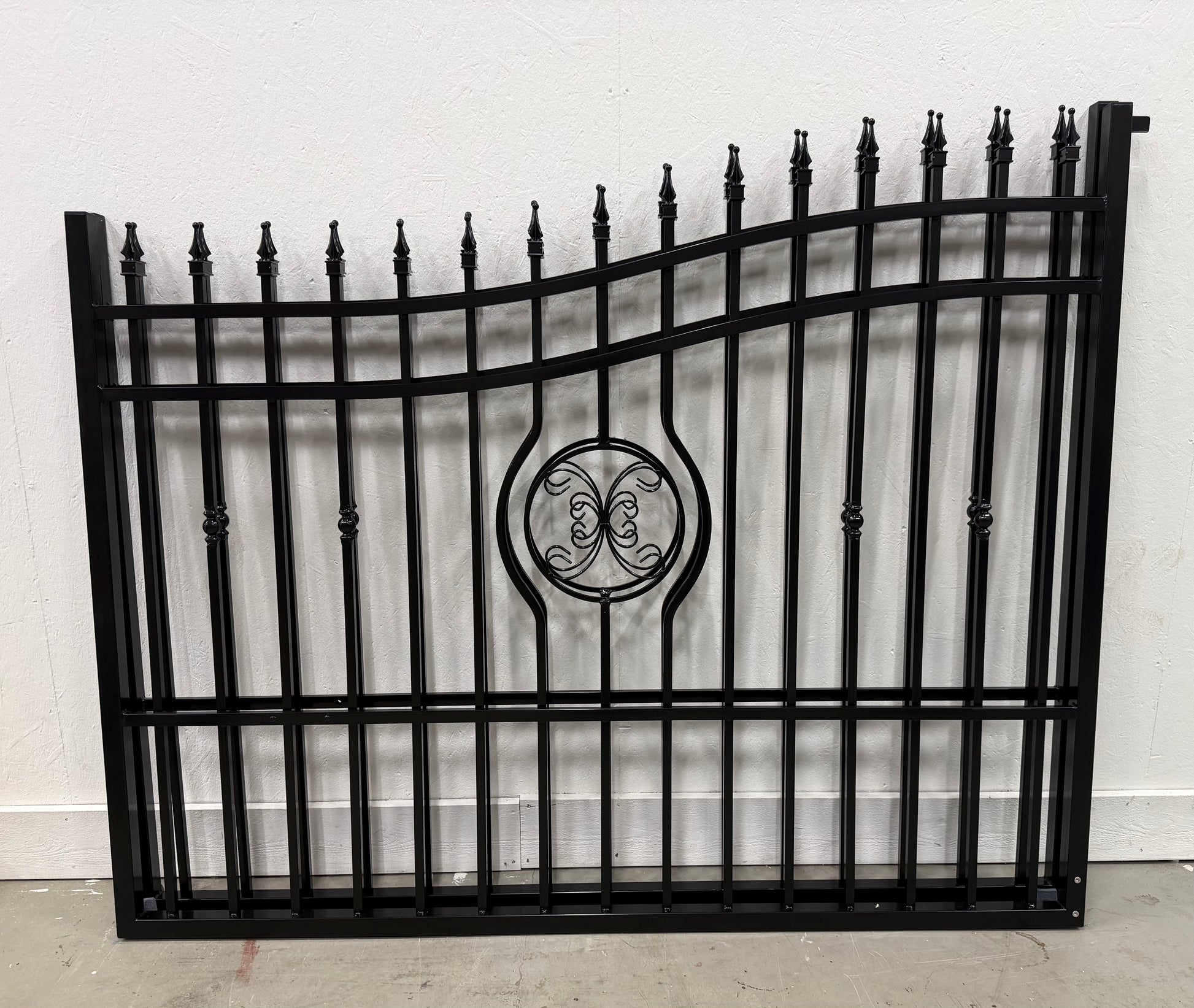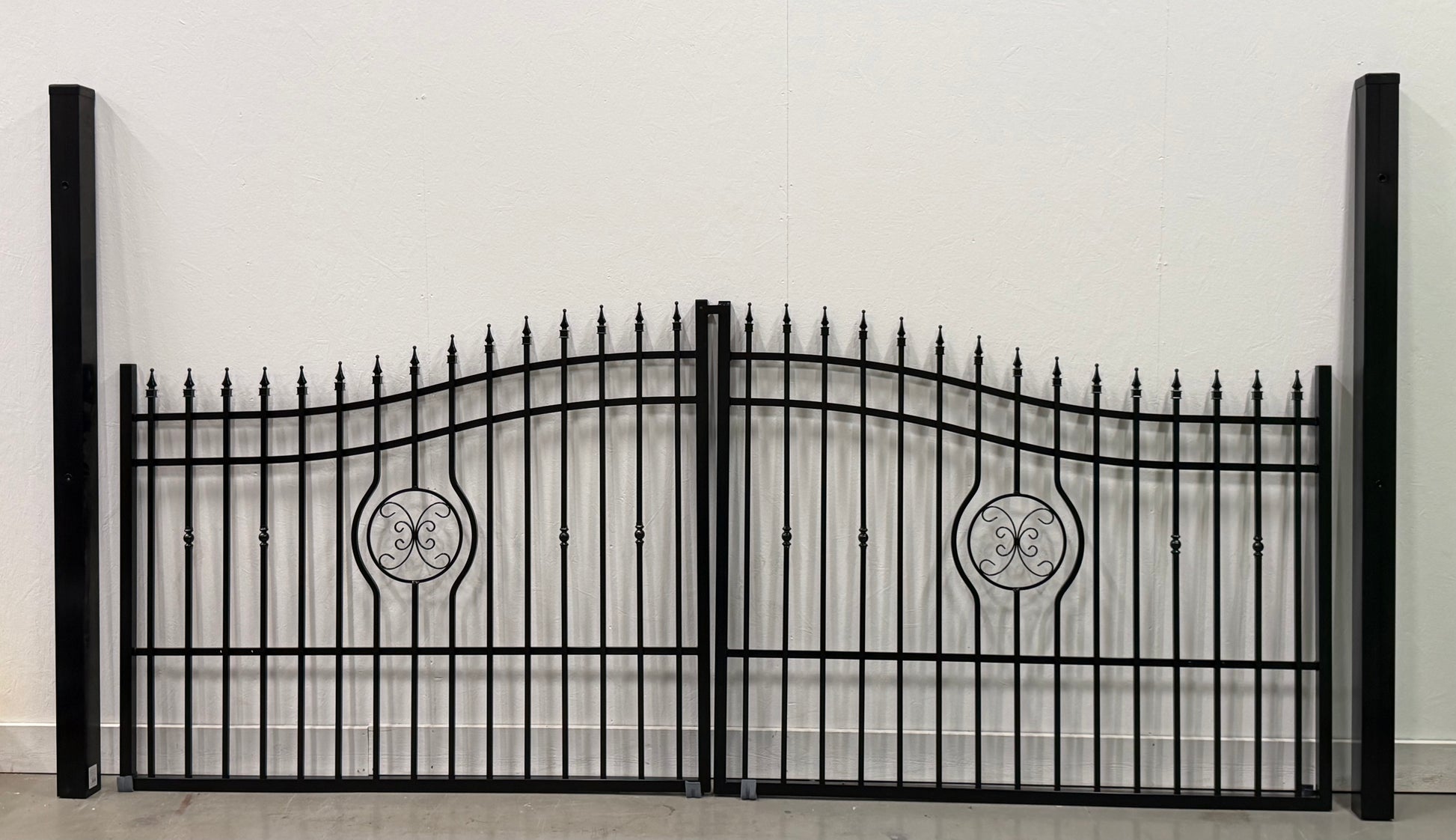 Vilhelmina dubbelgrind är en stabil och underhållsfri grind tillverkad i galvaniserat och pulverlackerat stål. Formen har en centrerad båge upptill och diskreta dekorinslag som ger ett klassiskt, tidlöst uttryck utan att ta över.
