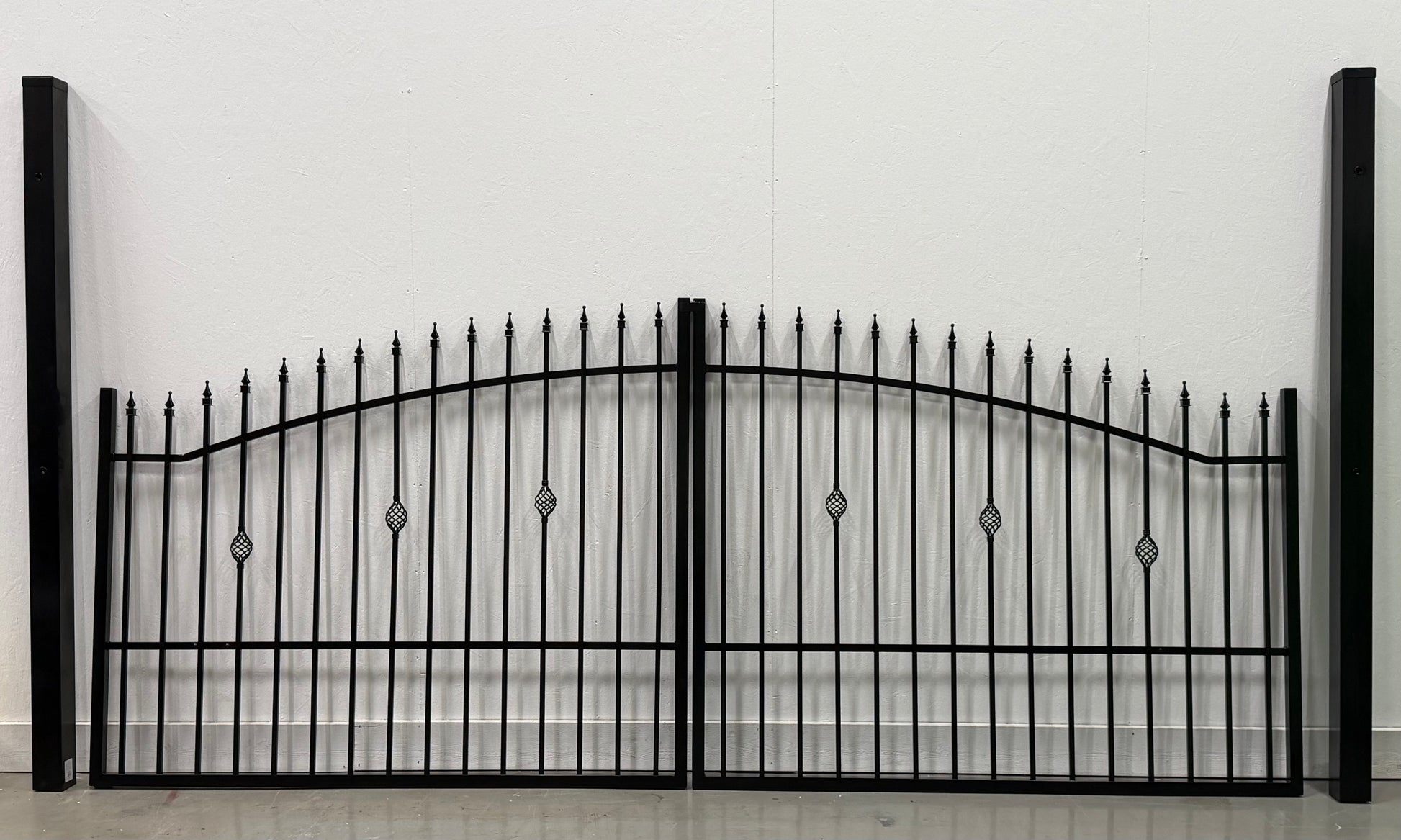 Ydre dubbelgrind är en stabil och underhållsfri grind tillverkad i galvaniserat och pulverlackerat stål. Formen har en mjuk bågform upptill och diskreta dekorinslag som ger ett klassiskt, tidlöst uttryck utan att ta över.